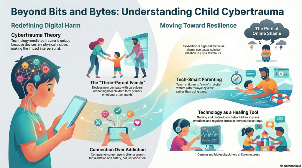 A major focus of the conversation is Catherine’s Cybertrauma Theory. She explains what cybertrauma means, how digitally mediated harm can differ from trauma that occurs in physical spaces, and why online experiences can leave deep and lasting effects even when adults fail to recognize the seriousness of what has happened. The discussion highlights the fact that online harm is not always visible, and that the effects can surface in behavior, attachment patterns, emotional regulation, and a child’s sense of safety.
