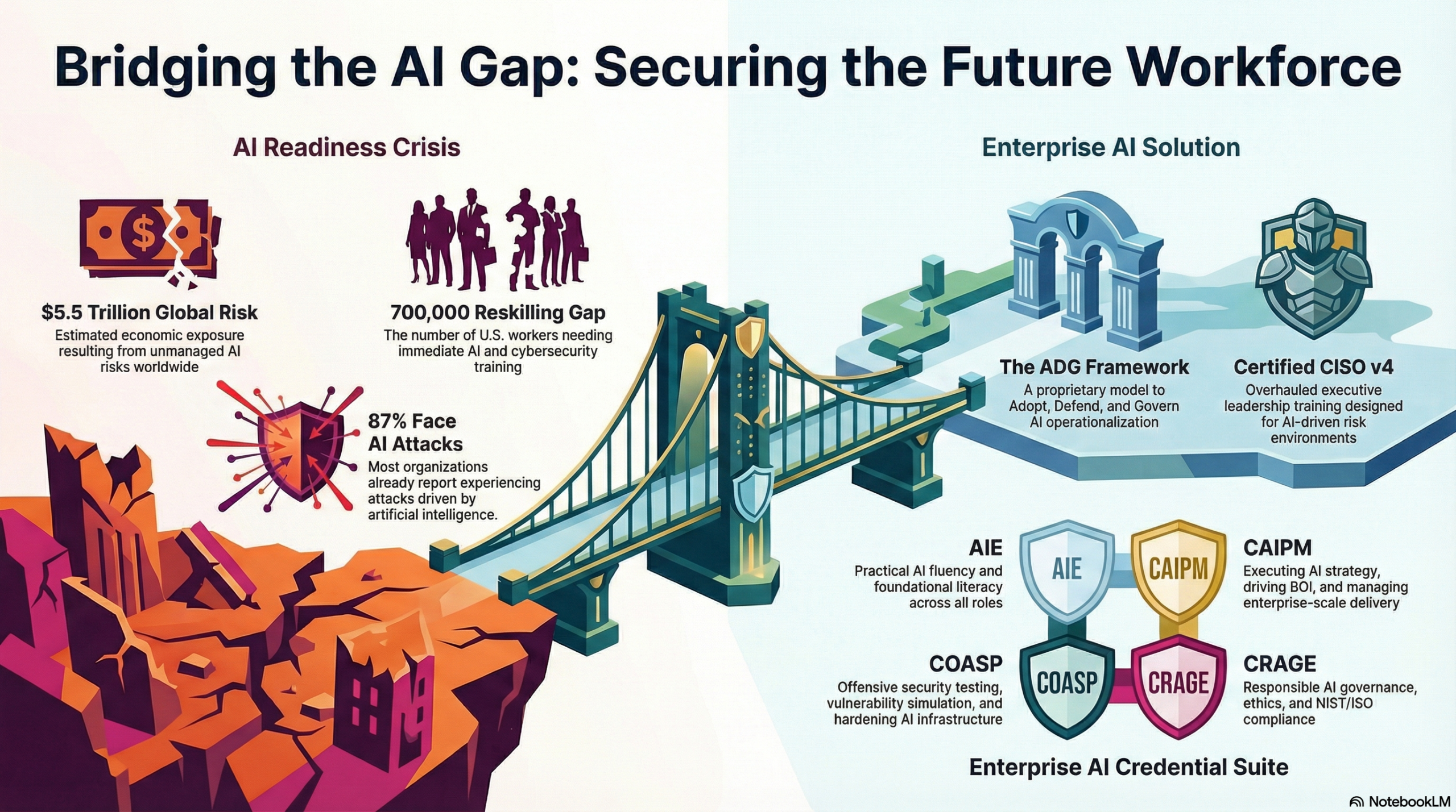 With $5.5 trillion in global AI risk exposure and 700,000 U.S. workers needing reskilling, four new AI certifications and Certified CISO v4 help close the gap between AI adoption and workforce readiness