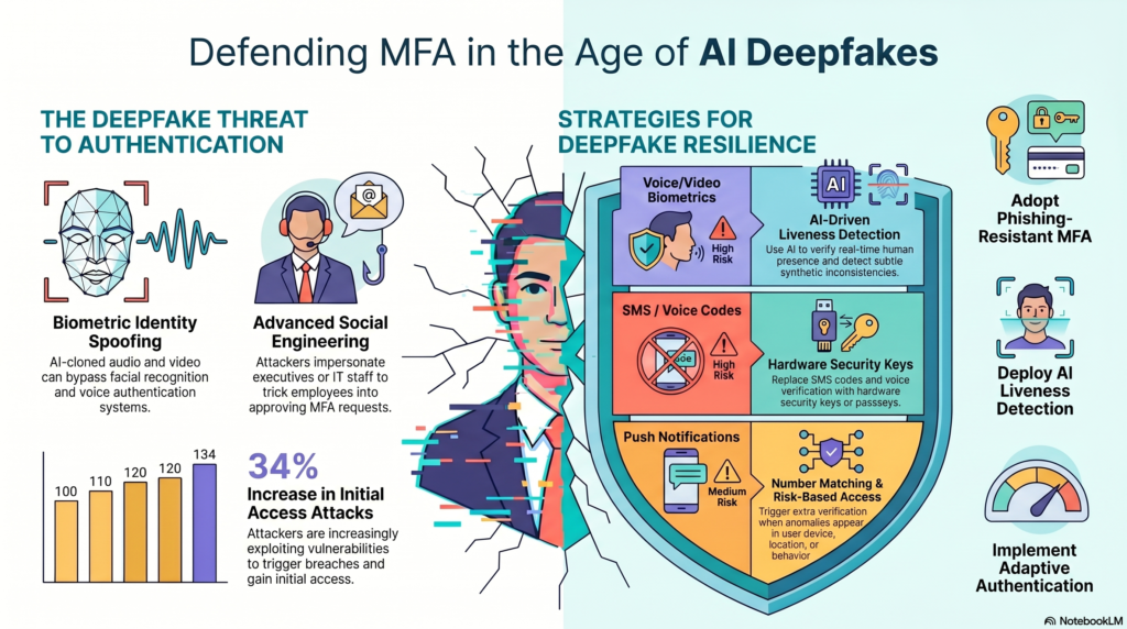 Deepfakes reshape the threat landscape and expose critical weaknesses in traditional MFA approaches, especially those reliant on biometrics or human verification. Entities must adopt layered and phishing-resistant authentication strategies to stay ahead of risks and protect sensitive systems effectively.
