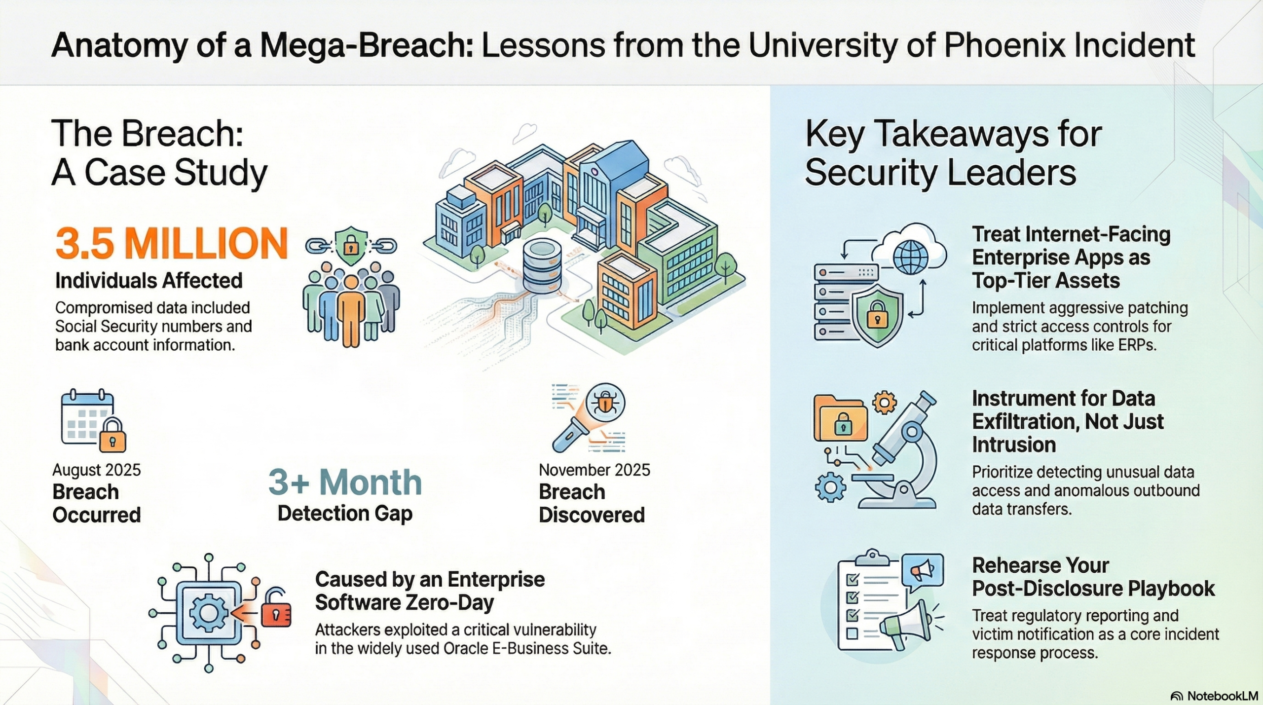The University of Phoenix has disclosed a data breach affecting nearly 3.5 million people, a reminder that when core enterprise platforms get hit, the fallout extends well beyond a single department or system. In this case, attackers exploited a critical, then-unknown vulnerability in Oracle E-Business Suite (EBS), accessed sensitive records, and extracted data tied to students, alumni, employees, faculty, and suppliers.